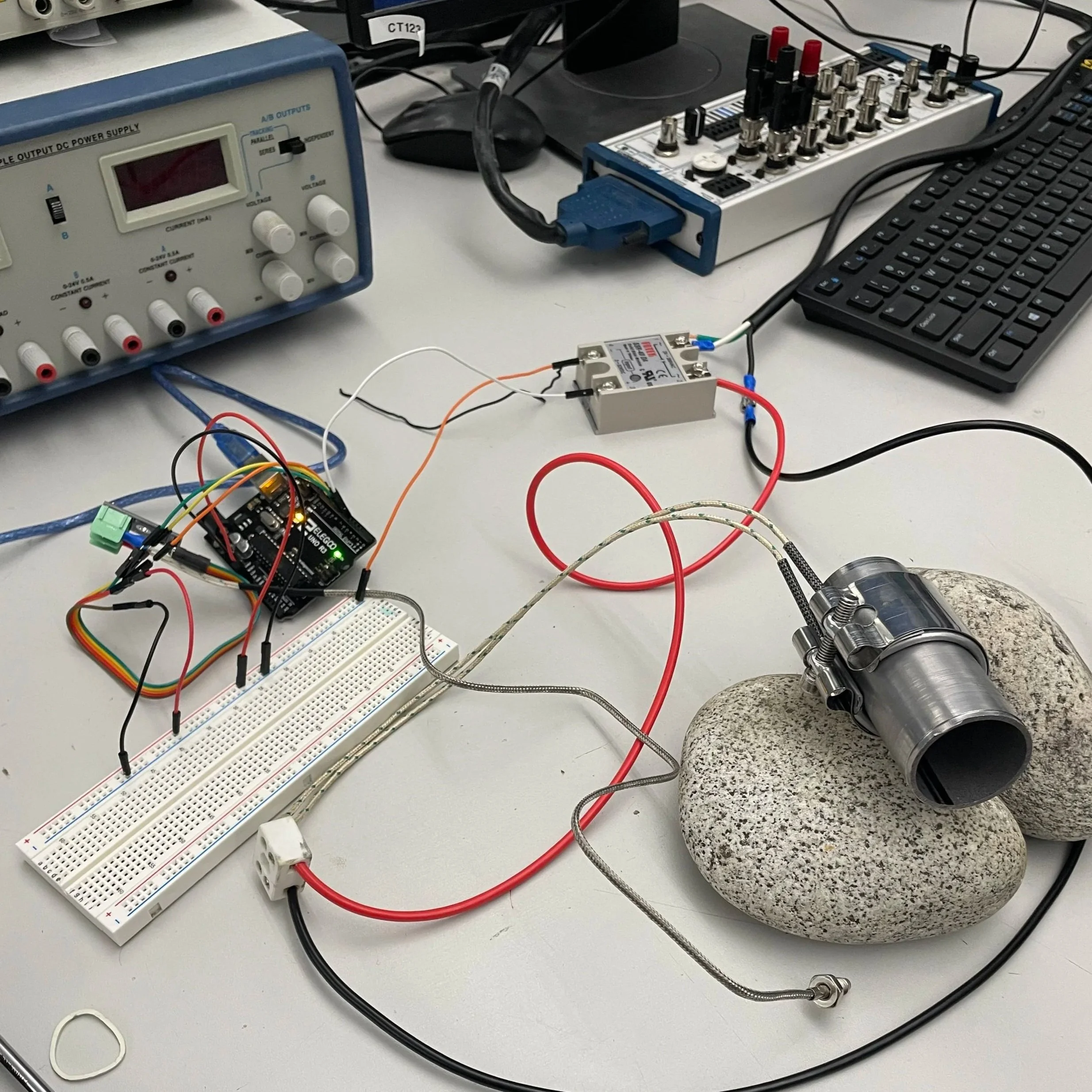 Photo showing testing of the heating element before placing on full assembly
